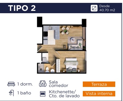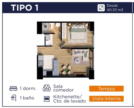 Departamento en San Miguel , 1 Dormitorios o Ambientes. , 1 Cocheras , Area 40 m²
