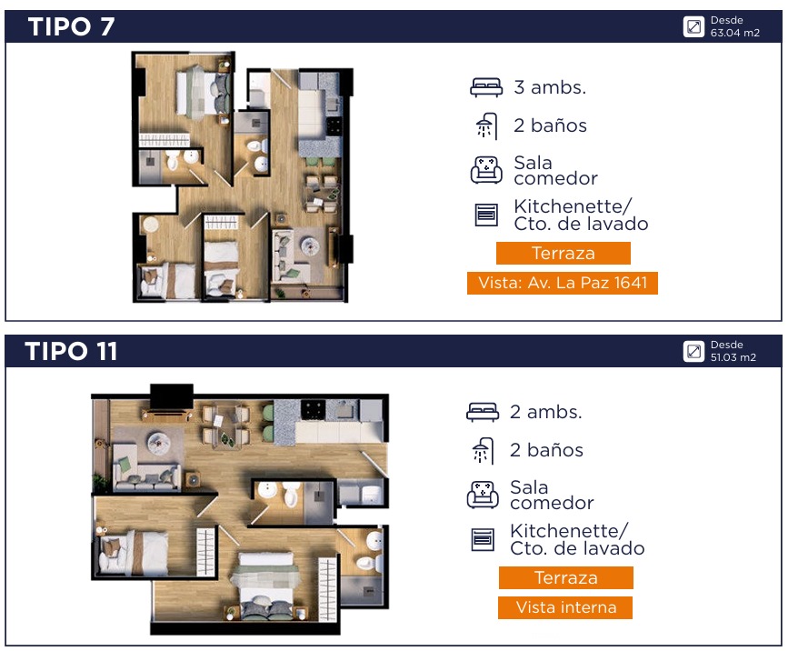 PROYECTO MULTIFAMILIAR DPTOS. DE 1, 2 Y 3 D. SAN MIGUEL ENTREGA MAYO 2027 Ubicado en la Av. La Paz, Urbanización Miramar, distrito San Miguel. Muy cerca del Centros comercial Plaza San Miguel, Hiraoka, Tayloy, Metro, Tottus, cines, clínicas, rodeado de parques. Cuenta con 13 pisos, distribuidos en 219 departamentos y 399 estacionamientos vehiculares. DESCRIPCIÓN: Área desde: 40.43m2 Sala Comedor Dormitorios Terraza Kitchenette Centro de lavado Baño completo Áreas comunes: Zona de niños Zona pet Área de bicicletas Área
